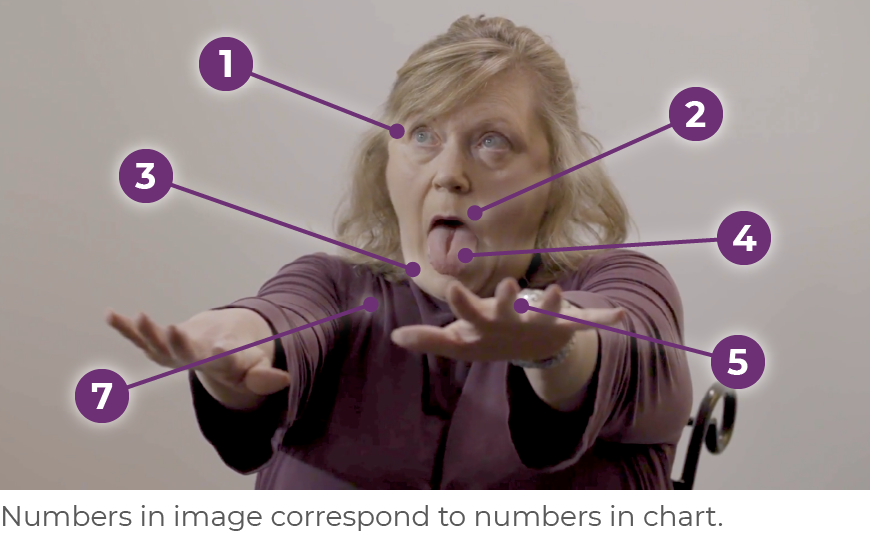 | • | Ask patients to hold their mouths open while sequentially touching their fingers to their thumbs. First, the HCP demonstrates these movements by holding the mouth open, then touching the fingers to the thumb, then combining these instructions. As the patient works to complete the sequential touching, abnormal tongue and facial movements may appear or worsen |