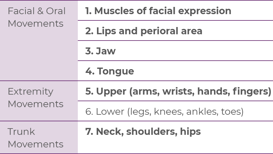| • | Items 1 through 7 assess the severity of involuntary movements across body regions |